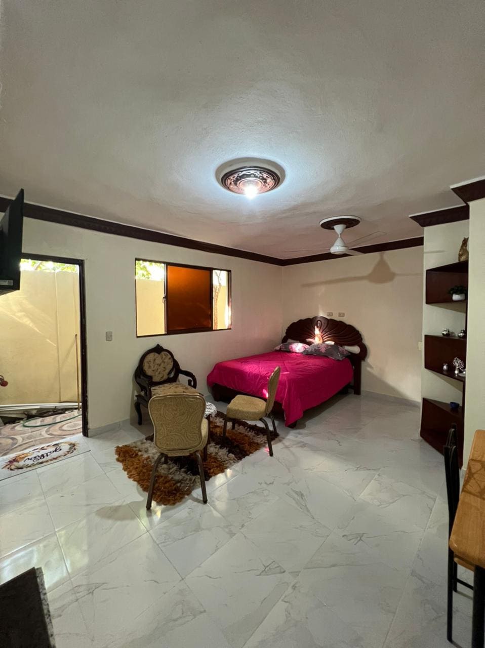 Make yourself at home in our modern studio in Cabarete, located in the dynamic neighborhood of "Callejón De La Loma" — just a short walk from the beach and all the main attractions. This contemporary space features an open-layout bedroom with a queen-size bed, a functional kitchen, a spacious bathroom, and a private balcony. Designed with large sliding patio doors for plenty of natural light, it's accented with cozy curtains, Spanish tile, and a stylish mix of wood and steel elements.