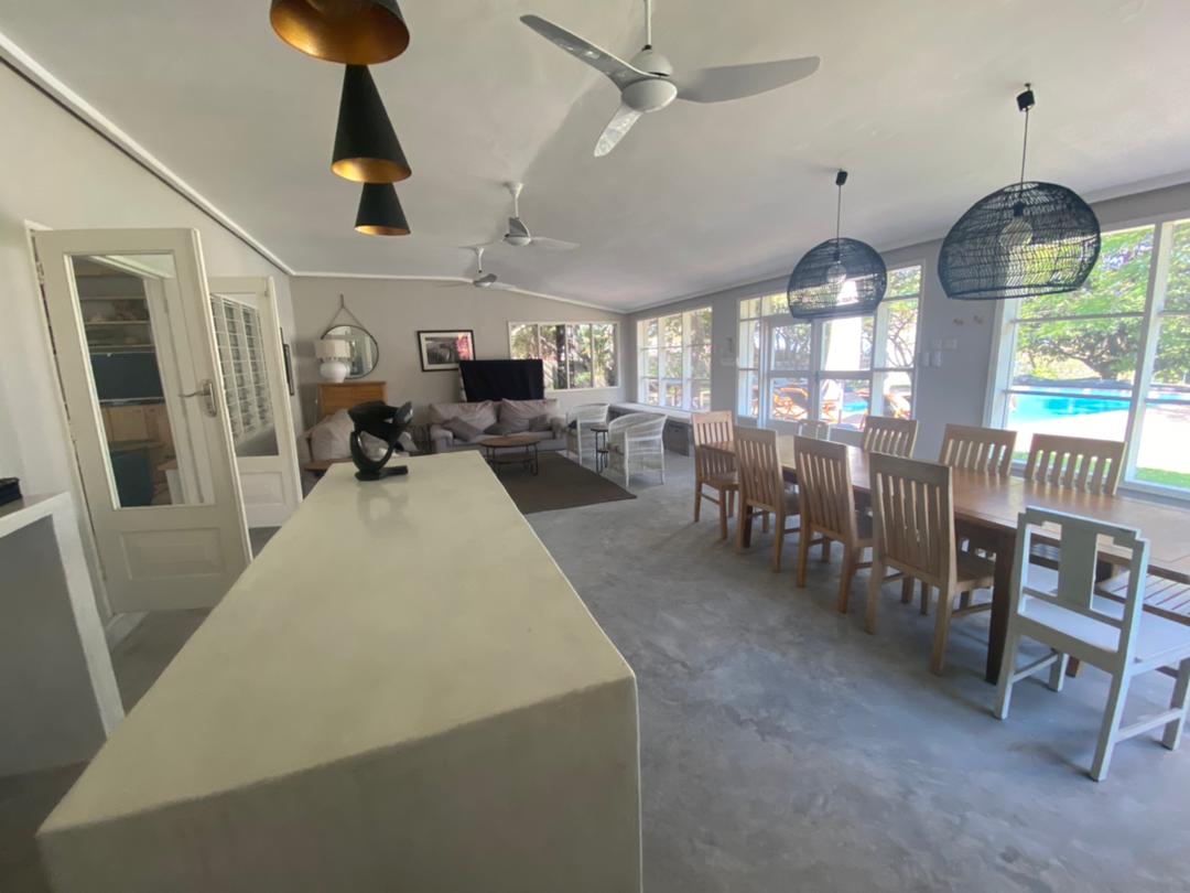 This self-catered beachfront cottage has 4 bedrooms, sleeping 8. Enjoy peaceful surroundings, beach views, and a relaxed vibe. It features a fully equipped kitchen, fridge, stove, and braai facilities in a secure area, just 5 mins from Nanchengwa Lodge. Two rooms have double beds, one a convertible three-quarter bed, one two singles, plus 2 bathrooms—one with bath/shower, one with shower.