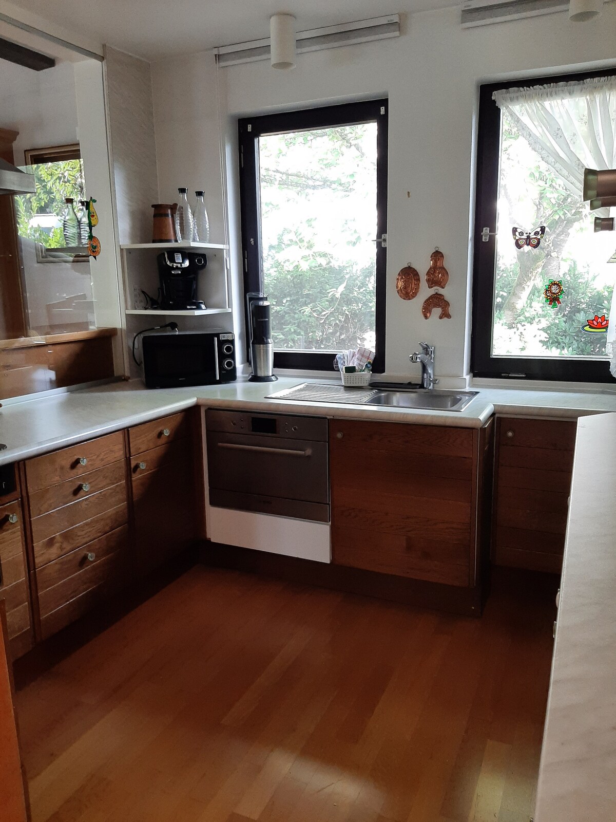 Dam terrası (qərb tərəf) olan parlaq və təsirli mənzil. Sevimli mebellə təchiz edilmiş mənzilimizdə özünüzü rahat hiss edin (3 nəfər üçün uyğundur) Qabyuyan maşın, qəhvə maşını, toster, mikrodalğalı soba və s. olan mətbəx-əyləncə otağını tamamlayın. NR mənzil, televizor, pulsuz Wi-Fi, terras, barbekü buxarı, allergiya xəstələri uyğundur, infraqırmızı sauna 10 €, içki xidməti. Heyvanlar: cırtdan çömçəquyruqlar, toyuqlar. Paltaryuyan maşın/ quruducu haqqı hər biri 3.00 €.