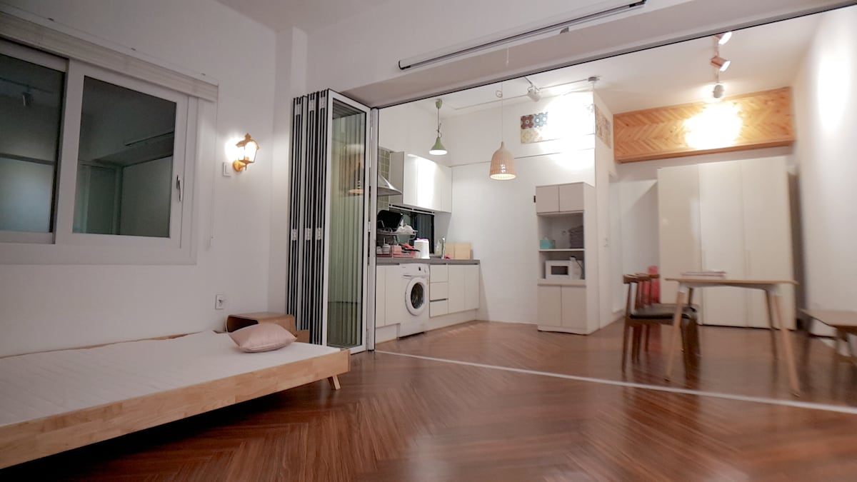 Salam, "Salam, Hansom". Salam, Hansum sevgililərin və birlikdə səyahət edən ailələrin Şərq dənizində rahat və xoş qonaqlama keçirə biləcəyi bir məkandır. Hansum Çimərliyi 5 dəqiqəlik məsafədədir və qonaq otağı masasında oturub okean mənzərəsindən zövq ala bilərsiniz. Bu, Netflix-i yataq otağında quraşdırılmış şüa proyektoru və 100 düymlük ekranı ilə izləyərkən qonaqlamanızdan zövq ala biləcəyiniz xüsusi bir məkandır. Bu,➰ 1 yataq otağı, qonaq otağı, mətbəx və 1 hamam otağından ibarət okean mənzərəli yaşayış yeridir. ➰ Yataq otağında kraliça çarpayısı və 4 nəfərlik qonaq otağı olan divan var. Netflix-i ➰ yataq otağında şüa proyektoru və 100 düymlük ekranı ilə izləyə bilərsiniz. Qonaq ➰ otağında və hər yataq otağında bir mufeng kondisioner var. ➰ Mətbəxdə quraşdırılmış soyuducu, elektrik peçi, mikrodalğalı soba, təzyiqli ocaq və yemək bişirmək üçün qəhvə qabı var. Daxili baraban➰ paltaryuyan maşını da yuyula bilər. ➰ Bədən duşu, şampun, saç kremi, köpük təmizliyi və diş məcunu təmin edilir.(Diş fırçaları və duş dəsmalları təmin edilmir.) ➰ Ev heyvanlarına icazə verilmir.