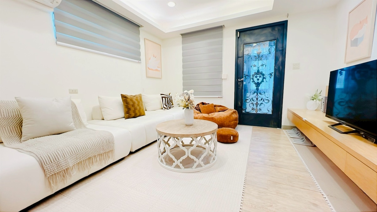 室內的灰白主色,配搭北美木紋銅色傢俱及家飾, 用心為您的居住空間提供沈靜優雅的感覺。日韓系電器的選用,不論是無線充電藍牙喇叭 ,大螢幕伸縮高清電視 ,都能滿足您對影音效果的要求。房源位於高樓內縮樓層,阻絕不必要的噪音並滿足您對景觀 ,安靜及隱私的要求。大樓並配有全天候警衛,住戶專屬電梯 ,公用大露台 ,以及地下收費停車場, 位處西門町核心路段,無論搭乘捷運或自駕都非常方便。Yer tonuna əsaslanan interyer dizaynı isitmə, sakitlik, müalicəvi və xoş atmosfer təklif edir. Otaq ləvazimatları, o cümlədən ikinəfərlik çarpayı, duş kabinəsi olan geniş hamam otağı, kondisioner, filmləri olan ağıllı 4K TV/Netflix, WIFI interneti, körfəz işıqlandırması və simsiz bağlantısı olan musiqi pleyeri və USB adapteri portları.