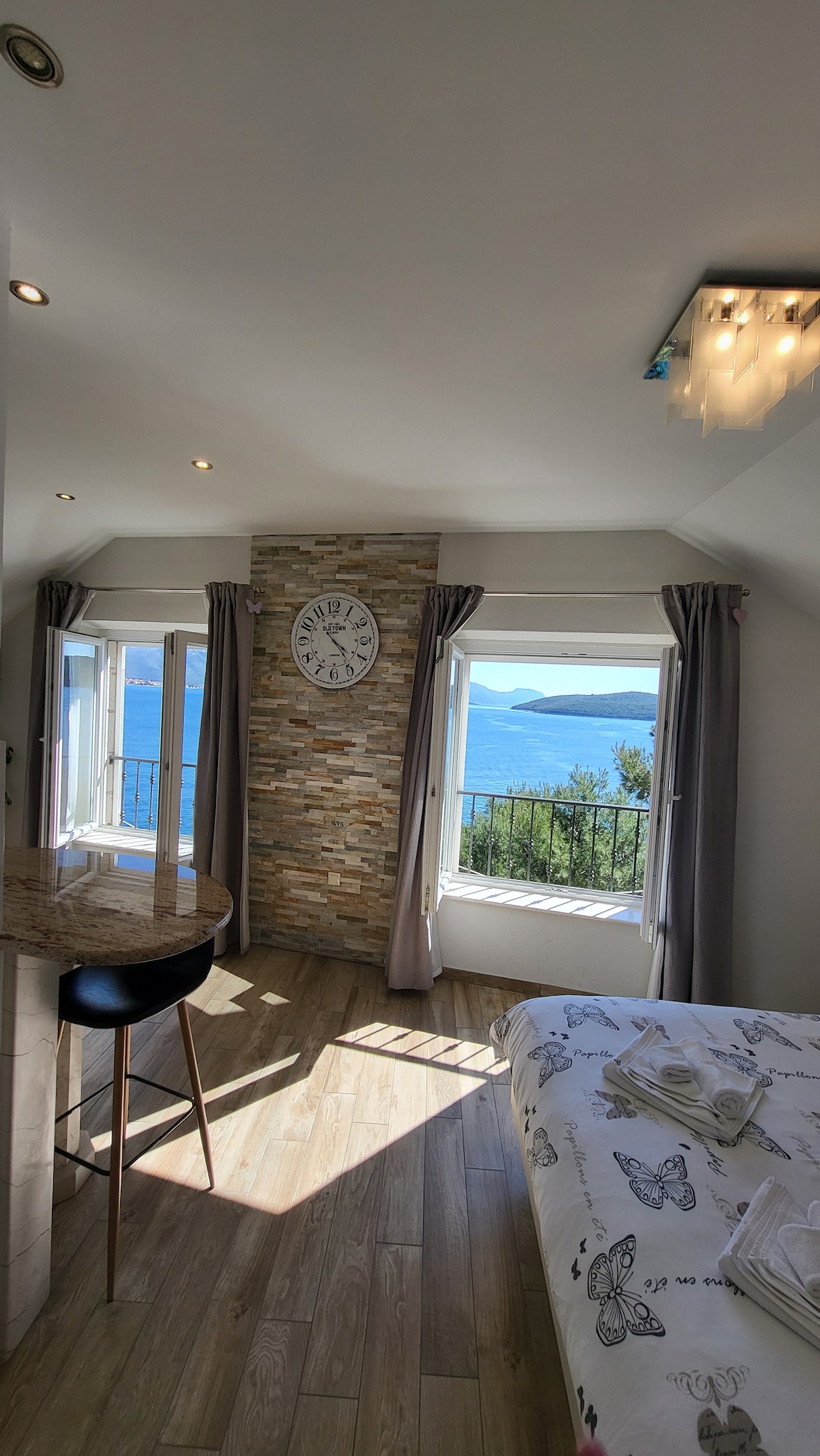 31 kvadrat metrlik studiya mənzili Korčula mərkəzində köhnə evin üçüncü mərtəbəsində yerləşir. Bu yaxınlarda bu gözəl şəhəri ziyarət edən insanlarla paylaşmaq istədiyim kiçik cənnətim olduğu üçün yenidən bəzədilib (daha çox foto və təfərrüat www. morning-colours.eu veb-saytında).