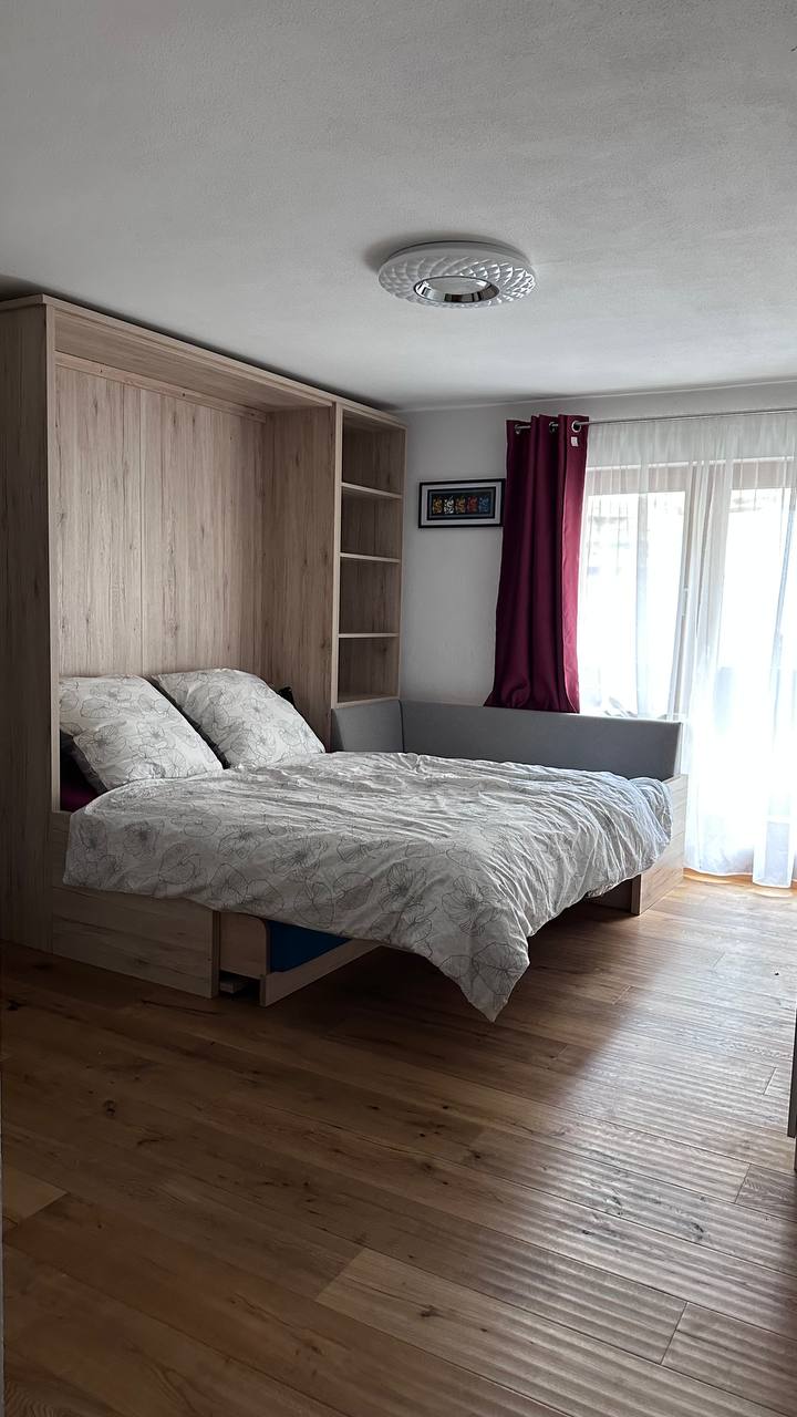 Qastein dağlarının mənzərəsi olan mənzil qabyuyan maşın, qəhvə maşını və soba ilə təchiz edilmiş mətbəxlə tam təchiz olunub. Vanna otağı/ tualet, yemək sahəsi olan qonaq otağı və açılan divan, güzgüsü olan əlavə daxili dolab. 2 nəfər üçün çarpayı. Wi-Fi sizin üçün pulsuzdur, eləcə də evin düz qarşısında pulsuz parkinq mövcuddur. Oturma imkanı olan balkon. Paltaryuyan maşın və quruducu ödənişlə qarşı-qarşıya mövcuddur.