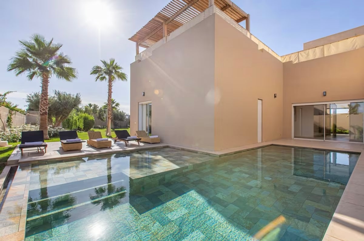 Villa Riad Perle d’Annellia, with private pool, is located approx. 7.5 km from Marrakech. It offers 3 pools, a terrace, Wi-Fi and private parking, within a secure residence. Fully air-conditioned, the villa includes 2 suites with private bathrooms, 2 lounges and 1 equipped kitchen. Towels & bed linen are provided. Guests can enjoy 2 shared pools, 1 kids’ area, nearby shops & restaurants, and a concierge service.
