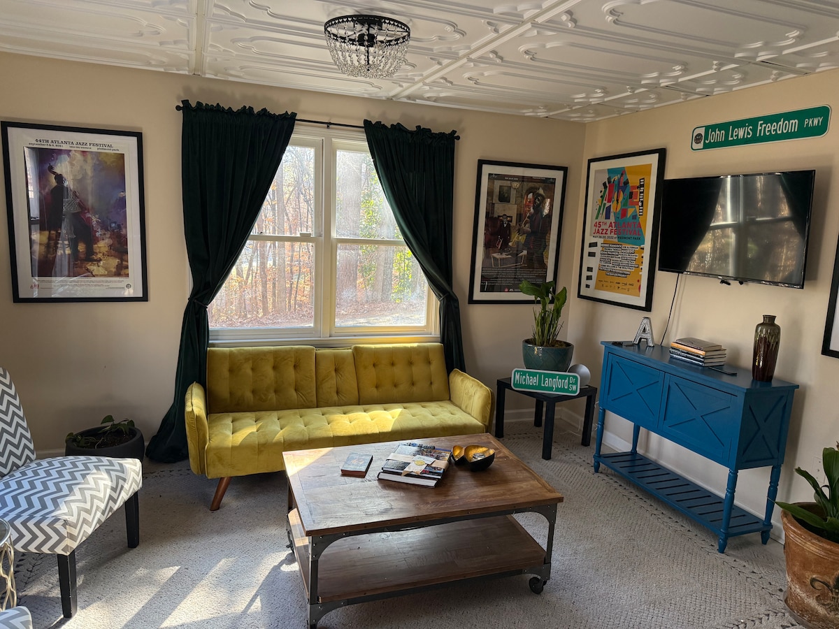 Newly launched, be among our first guests. Enjoy intro pricing on a private apartment attached to a larger home w/ two king bedroom suites, cozy living spaces, and peaceful outdoor patio. Our Atlanta Suite has its own private entrance and offers privacy while remaining part of a peaceful, wooded property. Perfect for couples, creatives and quiet getaways. Fully equipped kitchen. Laundry Room with comp. detergent. Bathroom stocked with essentials. Outdoor patio seating for morning coffee.