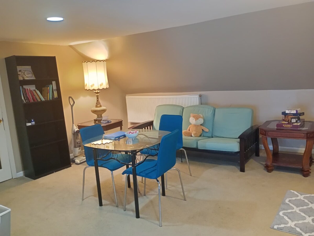 Escape to this family-friendly Clifton Park retreat—just 20 mins to Saratoga Springs and 25 to Albany. Perfect for fall getaways with a fire pit, outdoor movie screen, private playground, basketball court, and garden. Features a king bedroom, home office, full kitchen, fast Wi-Fi, soaking tub, and 20' x 55' parking for RVs or boats. Relax in the crisp autumn air, enjoy backyard movie nights, and stay productive or cozy in a quiet, peaceful neighborhood.