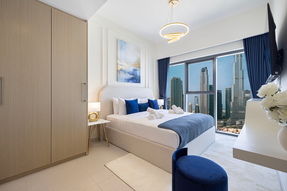 Dəbdəbəli 1-BR mənzilimizlə Downtown Dubayın mərkəzində təcrübə yaşayın. Burc Xəlifə və rəqs fəvvarəsinin heyranedici mənzərələrini seyr edin. 4 nəfərə qədər qonaqlayan böyük ölçülü çarpayı çox rahatlığı təmin edir. Qonaq otağındakı divan əlavə 2 qonaq yerləşdirmək üçün çarpayıya çevrilir. Həmçinin səhər saat 11:30-dan etibarən çantalarınızı endirə və məhəllə baqajından pulsuz zövq almaq və ya giriş vaxtından əvvəl bina imkanlarından istifadə etmək üçün açarları götürə bilərsiniz.