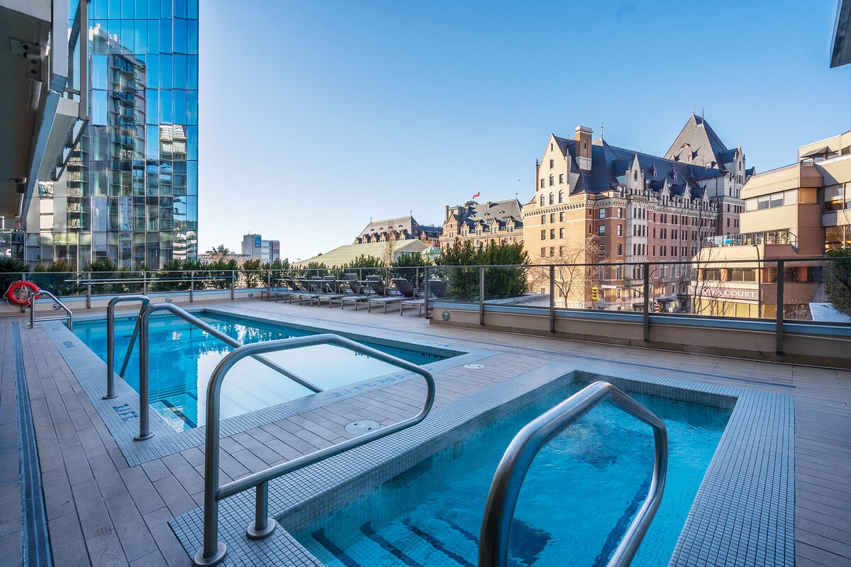 WaterFalls Oteli: Viktoriya şəhər mərkəzinin 16-cı mərtəbəsindən Daxili Limanı, Olimpiya Dağlarını və Fairmont Empress və Britaniya Kolumbiyası Qanunvericilik Palatasının damlarını əhatə edən özəl panoramanızı seyr edə bilərsiniz. 106 kvadratmetrlik, iki yataq otaqlı, ayrıca eyvanı, spa üslubunda hamam otaqları və möhtəşəm bina imkanları olan süitamız Viktoriya şəhərinin ən yaxşı restoran, park və mədəni məkanlarından mükəmməl 100 Gəzinti Xalı məsafəsində yerləşir.