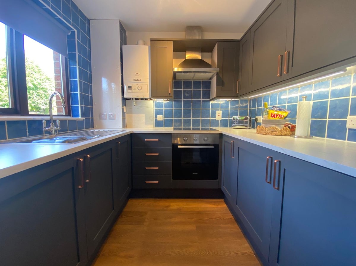 Home from home spacious detatched property set 30 yards to rear of main house totally private. Next to 9 hole golf course, convenience store, off Licence and Pizza/chip shop. Excellent bus service on doorstop. 2 mins to M1 motorway 10 mins to city centre. Kitchen well equipped with pots pans, crockery, glasses and utensils etc. Salt, pepper, oil, tea/coffee sugar all supplied. Bathroom features electric shower, towels, shampoo/conditioner & shower gel. Bedroom has King size bed.