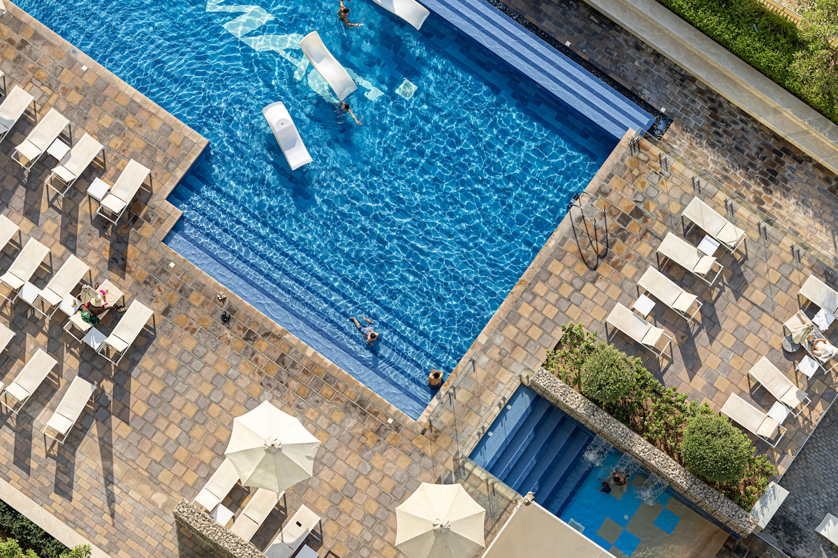 Dəbdəbəli şık istirahət, hovuz mənzərəsi, hamam Sauna PS5