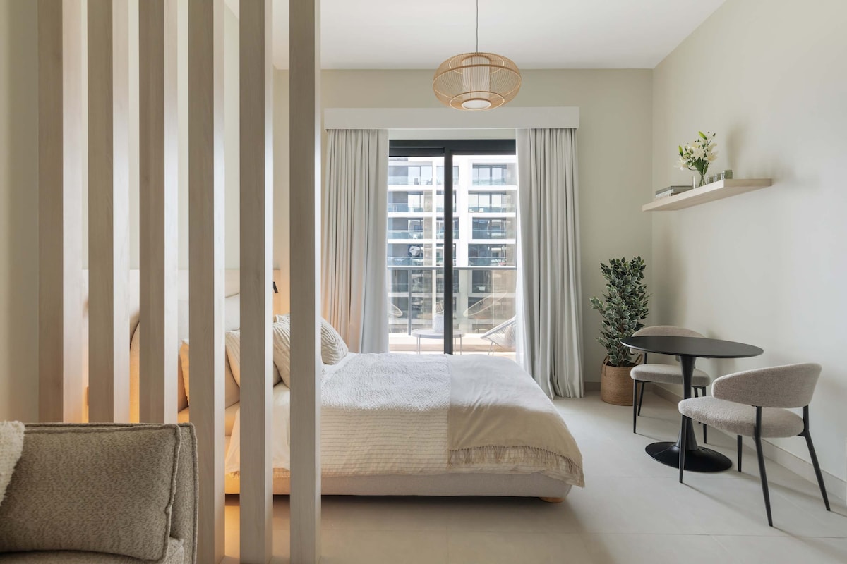 Dubai Hills Estate-in mərkəzində yerləşən, dizaynı ilə seçilən, sakit və lüks Hills House-a xoş gəlmişsiniz. Yamyaşıl parkların, Dubai Hills Mall və Kings College Hospitalın yaxınlığında yerləşən bu Skandinaviya üslublu mənzil rahatlıq, üslub və rahatlığı birləşdirir, ailələr, cütlüklər, həkimlər, işgüzar səyahətçilər və sağlamlığa diqqət yetirən qonaqlar üçün idealdır. Prive Residences-də yerləşən bu bir yataq otaqlı incəlik müasir imkanlar, sakit gecə mənzərələri və həm şəhər həyatına, həm də yaşıl sahəyə asan çıxış təklif edir.