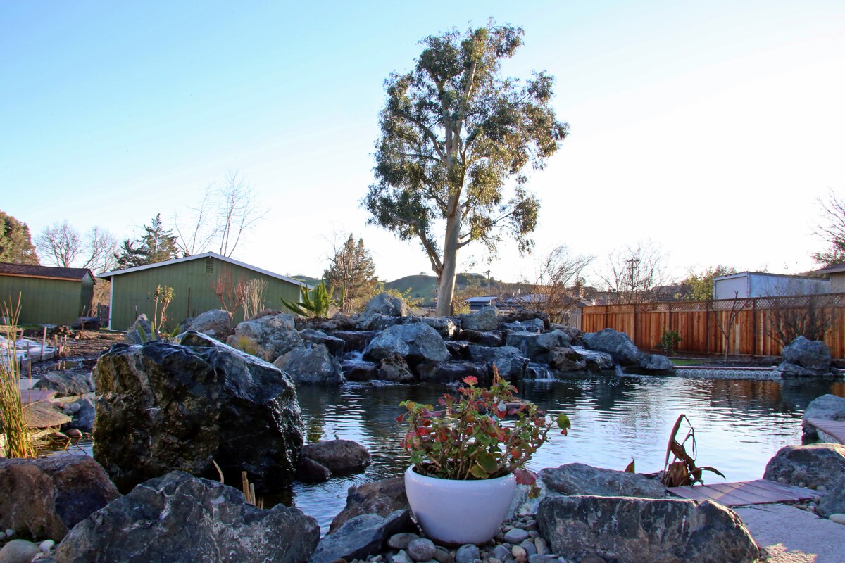 Gölməçə, Şəlalə və Valehedici Görünüşləri olan Dinc Ölkə İstirahət Mərkəzi Şəhər mərkəzindən Pleasanton, San-Fransisko Premium Outlets, yüksək reytinqli restoranlar və I-680 və I-580 avtomobil yollarından cəmi bir neçə dəqiqəlik sakit kənd istirahət məkanına qaçın. Bu geniş 3 otaqlı, 2 otaqlı ev böyük xüsusi əmlakda yerləşir və mükəmməl sakitlik və rahatlıq qarışığı təklif edir. Bu unikal və sakit tətildə bunu asanlaşdırın.