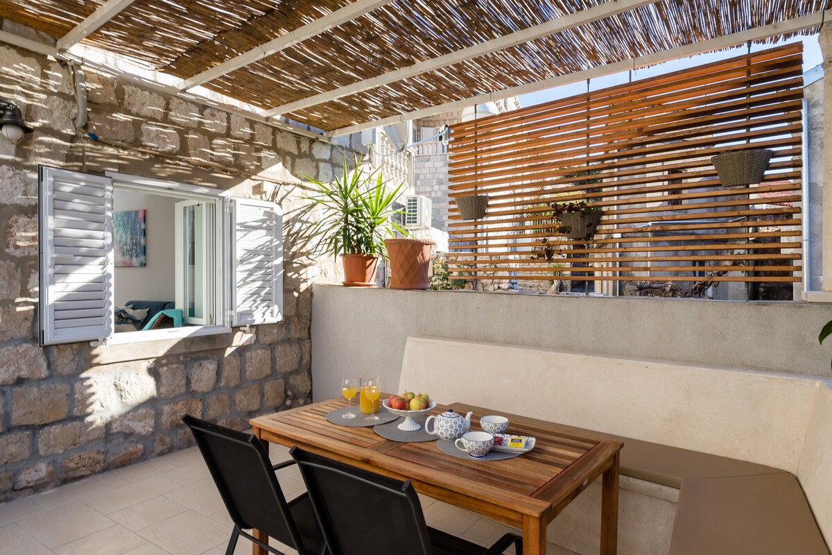 Dubrovnikin mərkəzində yeni təmirli mənzil. İçəri Şəhərdən piyada 15 dəqiqə, ən yaxın çimərlikdən isə 5 dəqiqə uzaqda yerləşir. Pulsuz Wi-Fi, kondisioner, peyk televiziyası. Mənzil tamamilə məxfidir. Bir yataq otağı (2 nəfərlik), mətbəx, hamam otağı və terrasdan ibarətdir. Döşəmə.