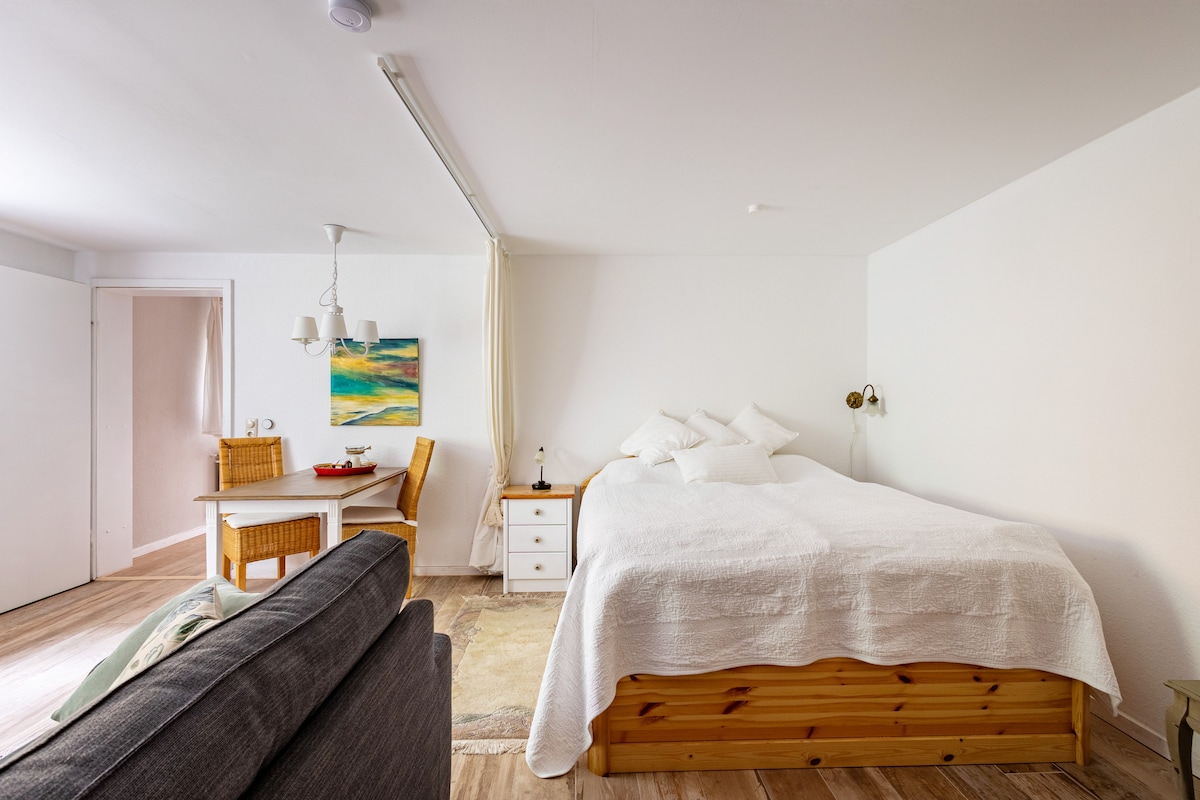 Bohem üslublu mənzil çox mərkəzdə yerləşir və qatar stansiyasından cəmi bir neçə addım aralıda yerləşir. ► 25m² 1 otaqlı mənzil yüksək keyfiyyətli avadanlıqla ► Mərkəzi vağzal 3 dəq. Üst döşəkli► Queen ölçülü çarpayı ilə Walkway ► pulsuz parkinq 10 dəq. Ayaqyolu ► Kornflakes və Süd 🥣 Netflix, Amazon prime və ilə► 43 düymlük televizor🍿! 📺 ► Saunaraum 🧖🏻♂️🧖♀️► idman otağı 🏋️🏋️♀️ ► qeyri-məcburi körpə kotleti 👶🏻 ► Yoqa mat! 🕉️ Sorğu ❗əsasında: 3 nəfərlik erkən giriş/Əlavə divan çarpayısı mümkündür
