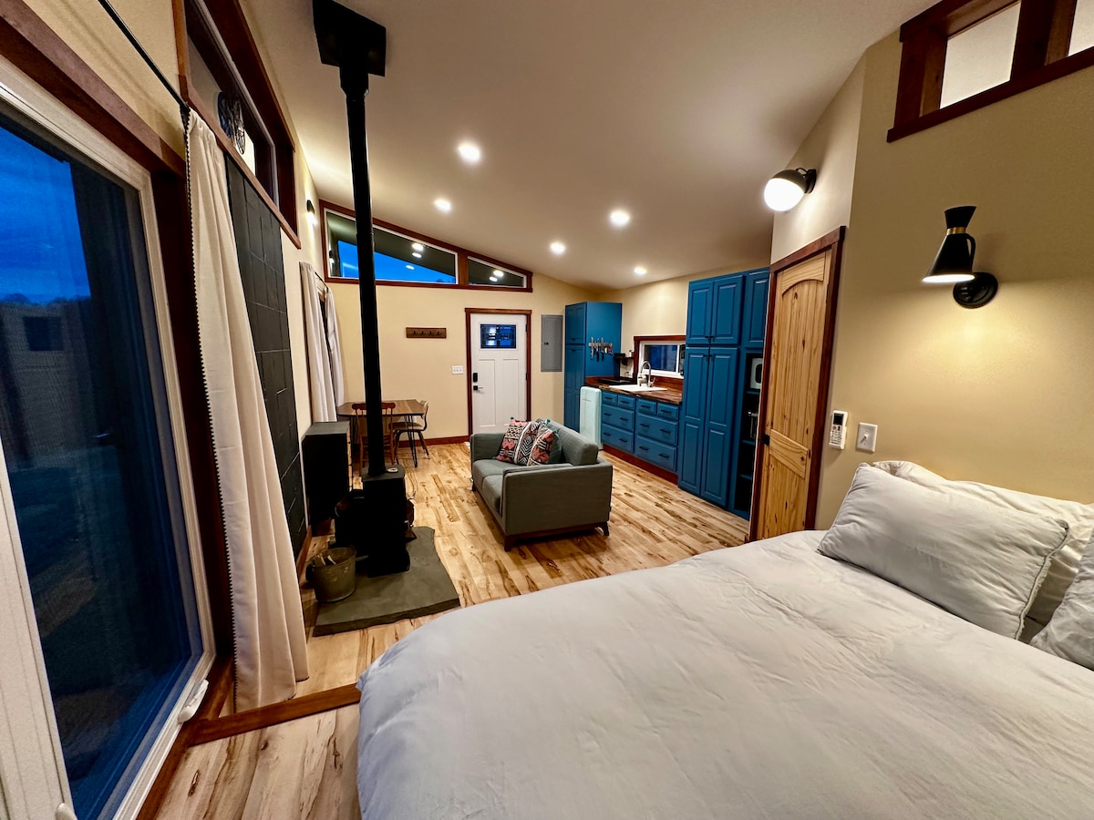 Our tiny house is beautifully appointed with everything you need to live (and work!) in luxury two miles from the Blue Ridge Parkway and two miles from downtown Floyd, VA. Sleep soundly on the queen sized mattress topped with 4" memory foam. Cook your gourmet meals in the fully equipped kitchen—(we provide welcome mini loaf, organic coffee, half and half, sugar, rolled oats, olive oil, salt, pepper, and cinnamon.) Spend the evening enjoying a campfire or relax on the porch swing.
