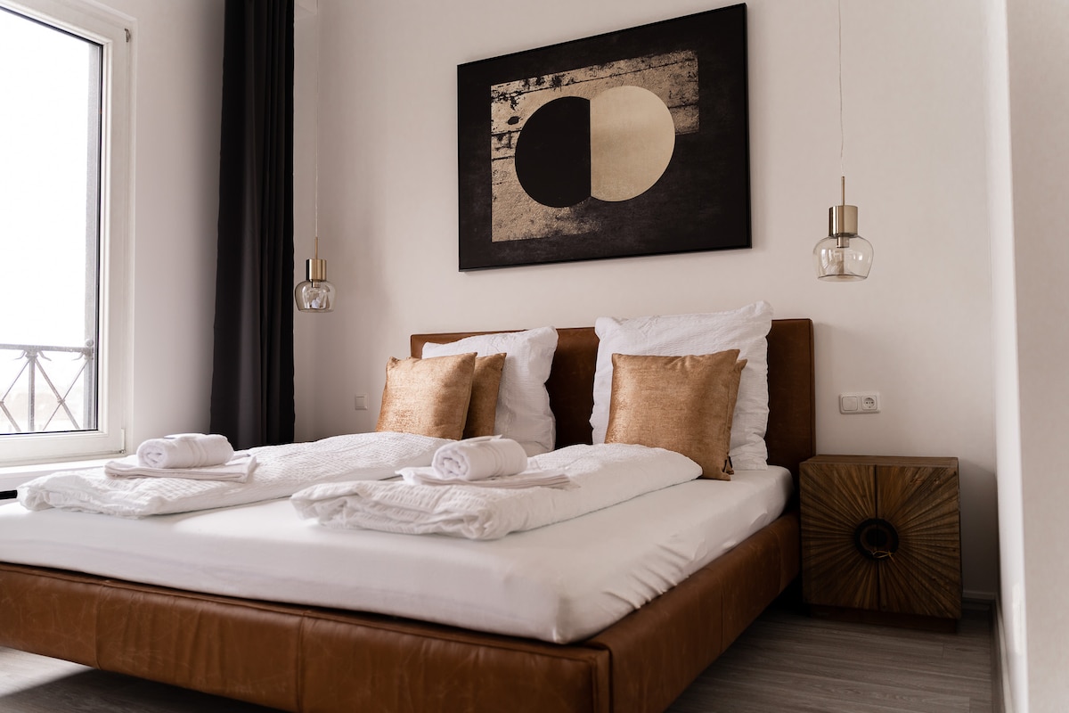 NOOQA-ya xoş gəlmisiniz ✨ – Duisburgda dincəlmə yeriniz. Parlaq, işıqlı otaqlar və yüksək keyfiyyətli materiallar müasir dizayn və rahat atmosferin mükəmməl qarışığını yaradır. ✔️ 2 yataq otağı (bitişik hamam otağı, ayrı-ayrılıqda çarpayılar) ✔️ 2 müasir hamam otağı (duş + vannası) ✔️ Açıq planlı yaşayış və yemək sahəsi ✔️ Eyvan və mətbəx ✔️ Ağıllı TV və Wi-Fi ✔️ Əsas stansiyaya, restoranlara və supermarketlərə piyada məsafədə ⭐ "Mənzil bir xəyal kimidir - işıqlı, müasir və mükəmməl təchiz olunmuşdur."