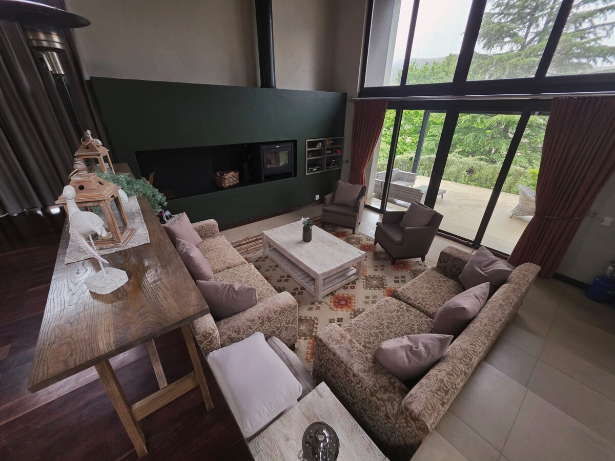 Bu geniş və sakit məkanda narahatlığınızı unudun. Ev şəlalə və vadinin məxfiliyini və möhtəşəm mənzərələrini artırır, əsl rahatlıq və üslubda dincəlmək və istirahət etmək üçün yer təklif edir. Evə geniş hamam otaqları və gözəl mənzərəli 5 yataq otağı daxildir. Buxarısı olan salon, tam təchiz olunmuş mətbəx, oyun otağı olan qapalı braai sahəsi və buxarısı olan veranda da daxil olmaqla qonaqlamanızı mümkün qədər rahat və səliqəli etmək üçün hər şeyimiz var.