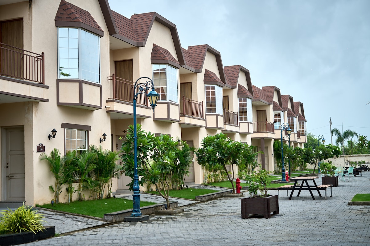 Discover this 2BHK Greek-themed villa with AC, WiFi, Room service and 24x7 House Keeping. 2 full-size bed(1 in each bedroom) to accommodate 4 people and 2 extra mattress will be provided for extra 2 persons. Your stay includes full access to our exclusive club area which Includes: Common swimming pool (Free) Common Kids play area (Free) Common theatre (Free) Common indoor games room (Free) Live DJ nights every Saturday & Sunday! (Free) Restaurant (Paid)