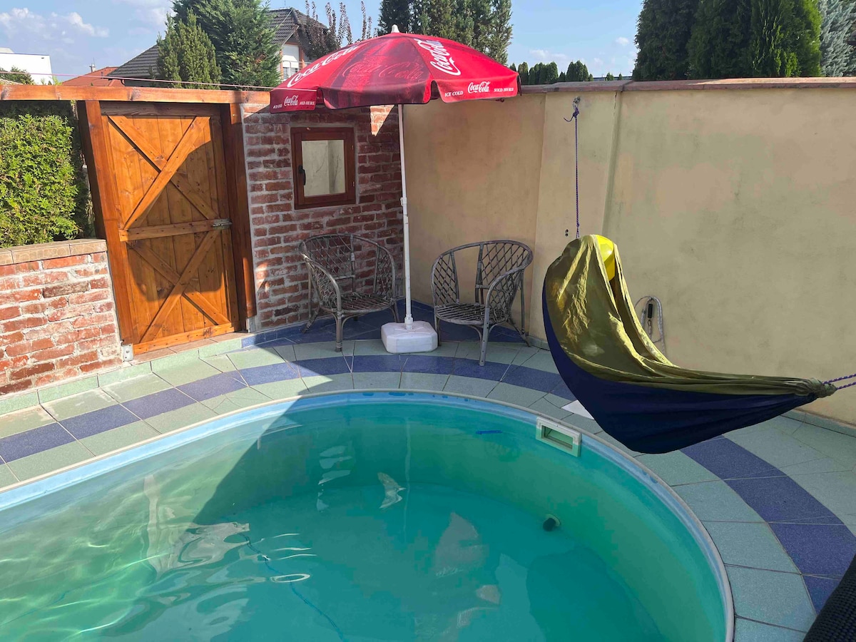 The cottage is located in a garden house on a large plot that breathes a family atmosphere. Family pets are also welcome. There is a beautiful nature near the small Danube, its shoulders with its water mills. Well-known Slovakia ring, Malkia park, X Bionic Sphere, Thermal Park Dunajska Streda. Everyone will surely find their own and can enjoy their holiday undisturbed.