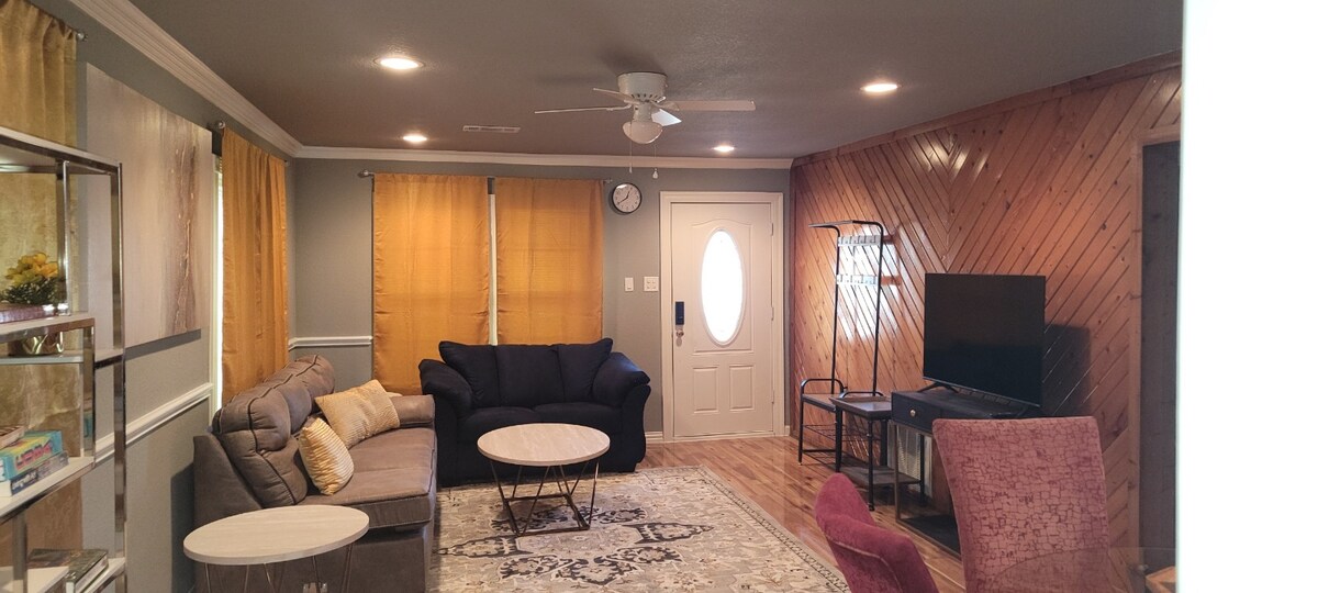 Bu yaddaqalan yer, uşaqlar üçün xüsusi mezzanin çox geniş olan mini evdir, paltaryuyan maşınlar da daxil olmaqla uzun və ya qısa müddətli qonaqlama üçün ehtiyacınız olan hər şeylə təmin olunur, bunun digər insanlarla paylaşıldığı çox böyük verandası var.... Grand Prairie el centro del Metroplex, 7 dəq. a Lone Star, 10 dəq. Altı Bayraq , 15 dəqiqə ATT stadionu və Texas Ranger, restoranlar və fastfud çox yaxındır, 30 freeway-da 4 dəq, 20 freeway-da 8 dəq, 161 freeway-da 7 dəq..