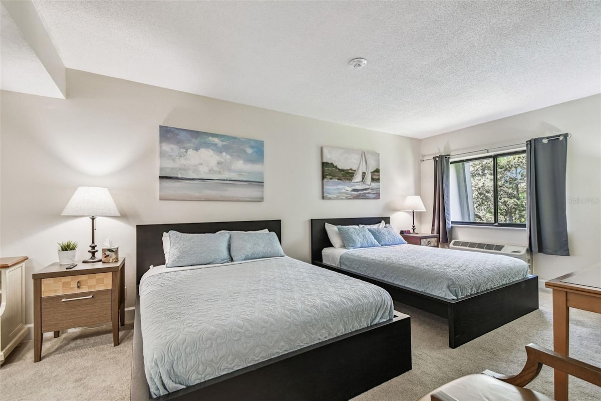 A private self check-in condo in a waterfront resort. ✔️ Walking distance to Downtown Dunedin ✔️ 10 minutes to Honeymoon Island and the ferry to Caladesi Island ✔️ 15 minutes to Clearwater Beach (time may vary on weekends and holidays) ✔️ 15 min to Innisbrook PGA golf ✔️ 20 minutes to Tarpon Springs Sponge Docks ✔️ The Pinellas Trail is just across the street ✔️ Jolly Trolley stop right outside the entrance ✔️ Enjoy beautiful Gulf views and stunning sunsets within the resort, just steps away 🌴