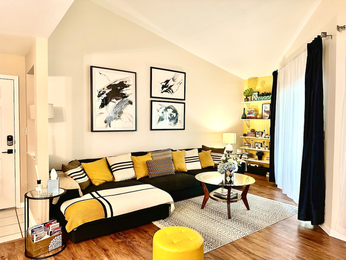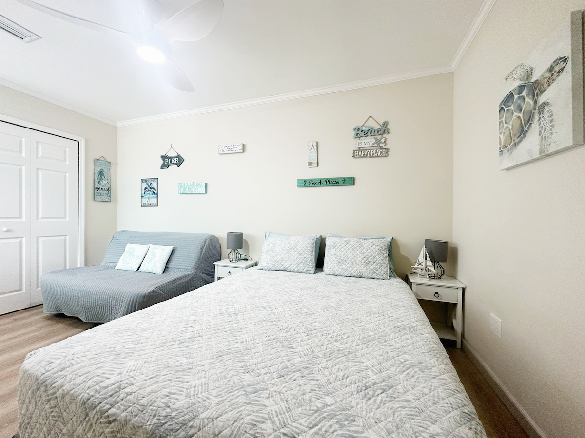Come and relax in this stylish, very comfortable, and cozy one-bedroom private condo, just 3 miles from the famous Clearwater Beach. The unit features a large king-size bed, a spacious bathroom, a fully equipped kitchen, and a sofa bed in the living room for additional sleeping space. Enjoy two TVs, a private patio, and high ceilings that make the space feel like home. Washer & dryer are located inside the unit. Amenities include a heated pool, 24-hour gym, plenty of free parking, and fast Wi-Fi