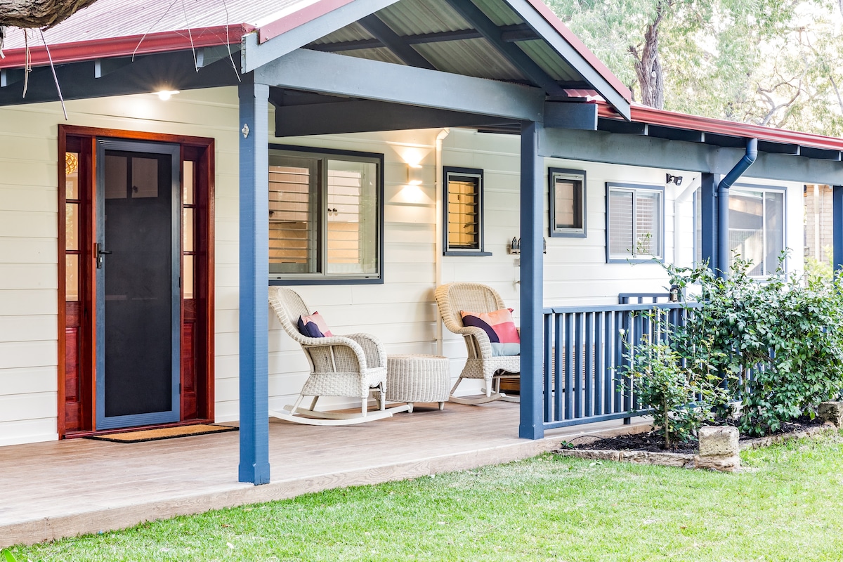Charming air-conditioned 1BR cottage nestled in peaceful leafy gardens, just a 2-min stroll to the beach. Features a king bed with hotel-quality linen, spacious bathroom with spa bath, private BBQ, and outdoor seating. Enjoy Smart TV, Wi-Fi & Stan. A scenic 3.7km walk or bike ride (BYO or hire) into town. Quietly located, it's an ideal base for exploring the region’s renowned wineries and natural beauty. Please note: no ocean views, no pets. Adults only.
