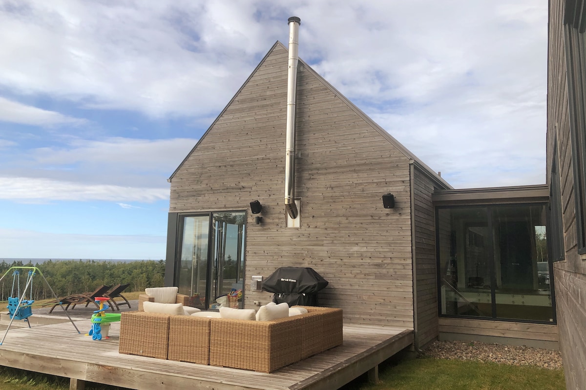 Perched high above Grand Étang, Cedar Peak offers sweeping views from highlands to ocean. Watch sunrise pour through the 13-ft window as you enjoy coffee in the open-concept living space. After a day of exploring Cape Breton, unwind on the panoramic patio at sunset. Purpose-built as a secluded, barrier-free chalet, Cedar Peak features a full kitchen, home theatre, and thoughtful comforts for an unforgettable stay.