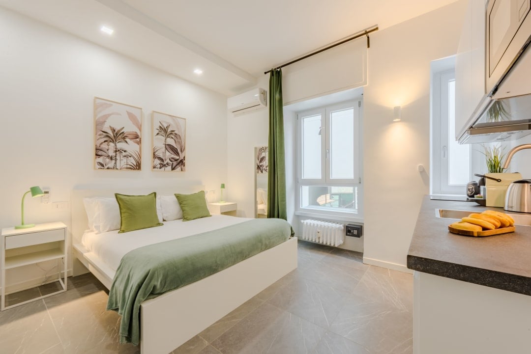 Una particolare soluzione disegnata e studiata in ogni minimo dettaglio con oggetti di design. Adatta per due o quattro persone in due letti: uno matrimoniale standard da 160 cm e uno alla francese da 140. Siamo in centro nel vitale quartiere di Porta Venezia a ridosso dei Giardini Pubblici, vicino alla metropolitana rossa in direzione Rho Fiera, vicino alla linea gialla e vicino alla stazione centrale in una via tranquilla al piano terra con accesso diretto da strada.
