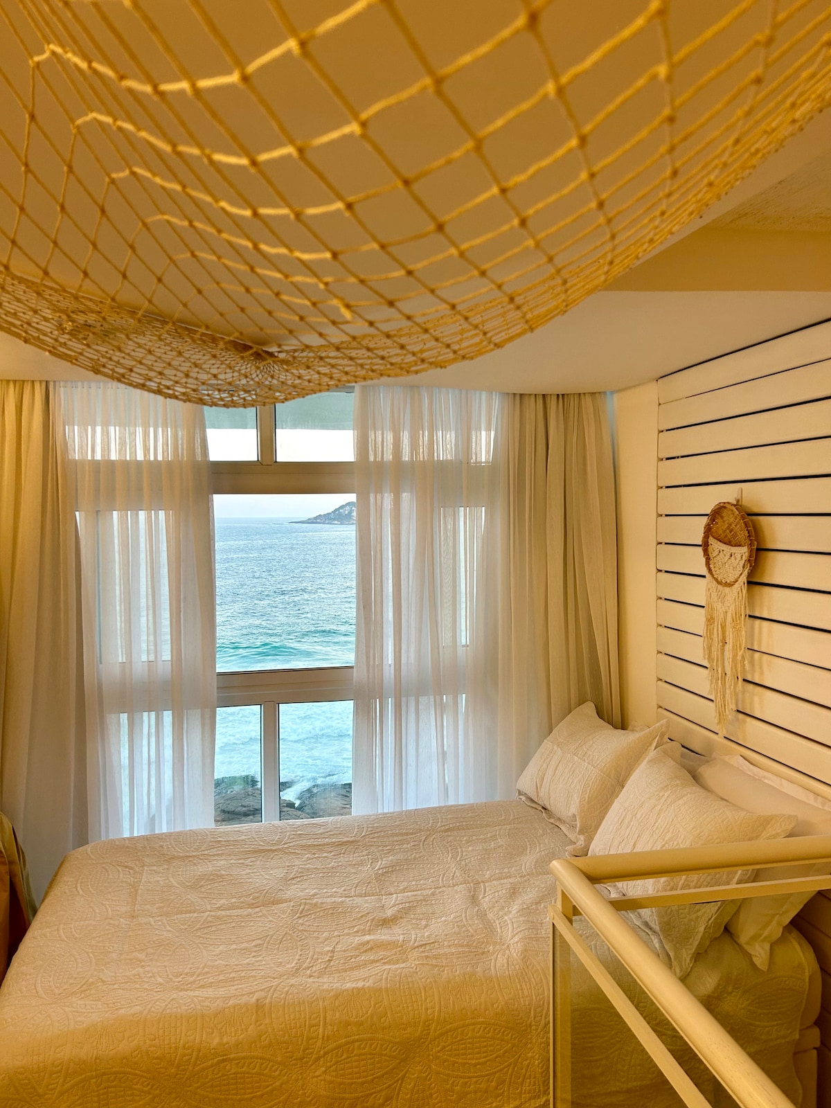 Enjoy a stunning and unique view of both the ocean and the mountain in a centrally located 2 bedroom renovated apartment in Leme, Copacabana ideal for families and couples. The apartment is cozy and has everything you need to make you feel at home. A very spacious and stylishly decorated living room, and a fully equipped apartment. One bedroom has a queen bed, the second bedroom has 2 single beds, and there are 2 more mattress/futons that can be placed in the living room if needed.