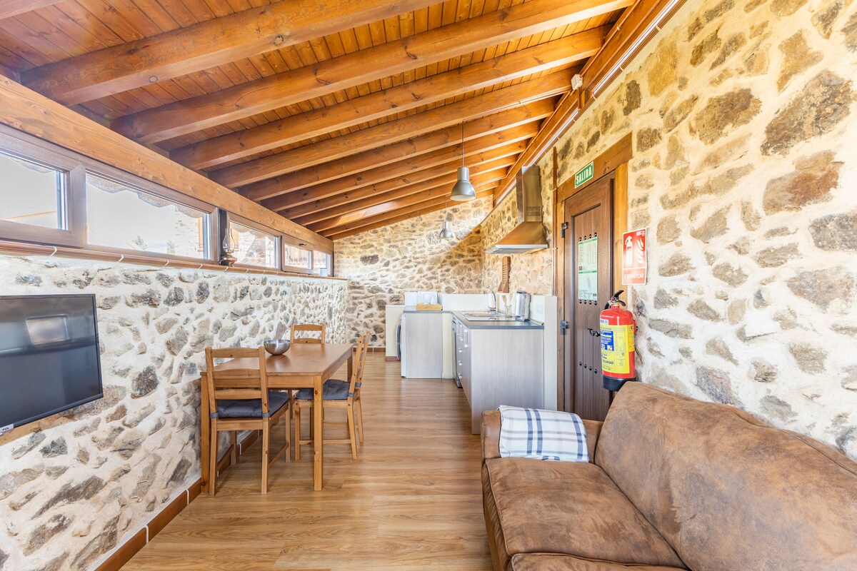 Vivienda de uso turístico (número de licencia: 42/000223) La cabaña de piedra es una acogedora casita de piedra y madera en la que pronto conectas contigo mismo y la naturaleza que te rodea. Es una casa muy especial, hecha casi a mano con gran esfuerzo y mucho cariño. Pero NO ES UN HOTEL, es una casa particular con sus propias características y condiciones, que no siempre coinciden con las de un hotel!!. Antes de reservar asegúrate de que cumple con tus espectativas.