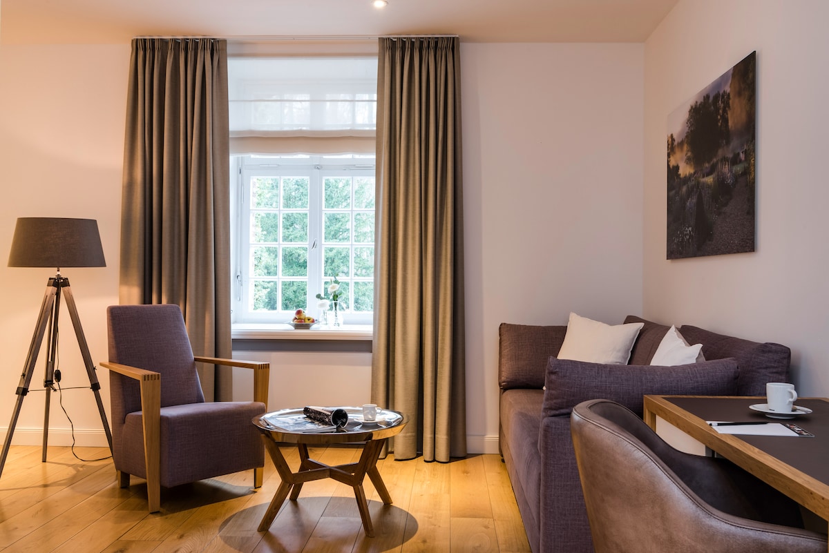 Kiçik, eleqant otelimizdə tarix və müasirlik harmonik şəkildə birləşdirilib. O, möhtəşəm parkın əhatəsində olan qala kompleksinin keçmiş bərpa edilmiş evində yerləşir. Otel, isti təbii tonlarda, geniş və işıqlı iki otaqda təbii materiallarla bəzədilmiş doqquz müasir və dəbli otağa malikdir. İki otaqdan ikisi ailə otağı ilə əlaqələndirilə bilər.