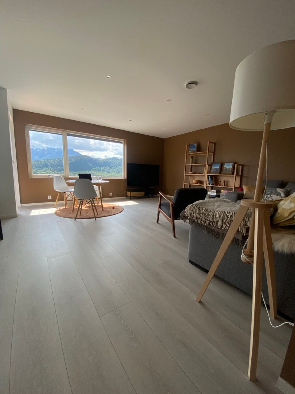 İdil və gözəl Sykkylvsfjordda yeni tikilmiş kabinə/kabinə, yüksək standartlı, yalnız suyun kənarında yerləşir. Sakit, sakit, fyordlar və dağların heyrətamiz mənzərəsi olan, suyun kənarından 10 metrdən az məsafədə. 70m2 üstəgəl iskele səviyyəsində böyük otaq. Unikal tərtibat, böyük pəncərə səthləri və çox səviyyəli otaqlar. İkinəfərlik çarpayısı olan bir yataq otağı və loft/TV otağında böyük divan çarpayı. Yataq otağına görə kirəmitli hamam otağı. İkiqat qapısı olan aşağı mərtəbə, fyord mənzərəsi və öz tualeti/camaşırxanası və soyuducusu/dondurucusu var.