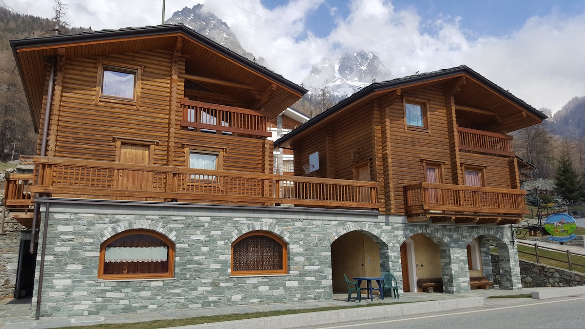 Alp dağları. İtaliya. Aosta Vadisi. 1600 metrlik kiçik bir kənddə, çəmənliklərin rahatlığında, inək və dağların otarılması. Qışda qar (adətən). Damın qədim şüalarını qoruyub saxlamaq üçün sevərək bərpa edilmiş ürək yeri. Böyük pəncərələrdən gözəl mənzərə və sülh, istilik və istirahət axtarışında olanlar üçün xüsusi sakitlik. Mebel çox gözəldir: hər şeydən əvvəl taxta, həm də daha canlı rənglər və müasir komfortlar. Həm qarda, həm də xizəkdə sakit ekskursiyalar.