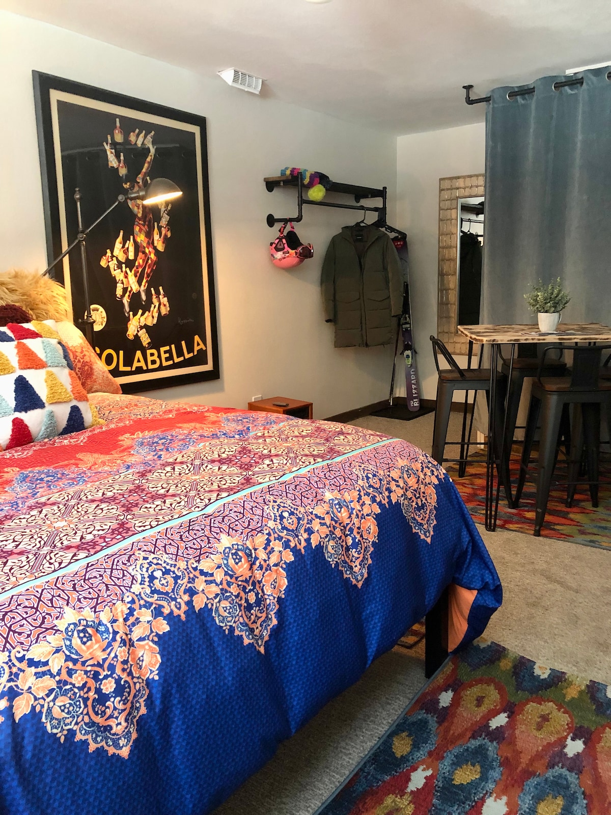 Mənzil evimizin aşağı mərtəbəsində yerləşir və tamamilə məxfidir. Yataq otağında kraliça çarpayısı və qonaq otağında çox rahat divan var. Buraya tam təchiz olunmuş mətbəx, paltaryuyan maşın, paltarqurudan maşın və Cuisinart qəhvə maşını da daxildir. Qonaq otağından görünən dağ mənzərələri və Qunduz Krikdən cəmi səkkiz dəqiqə uzaqdayıq! İki it yuxarı mərtəbədə yaşayır, buna görə də ev heyvanları ilə dostluq etmək yaxşıdır.