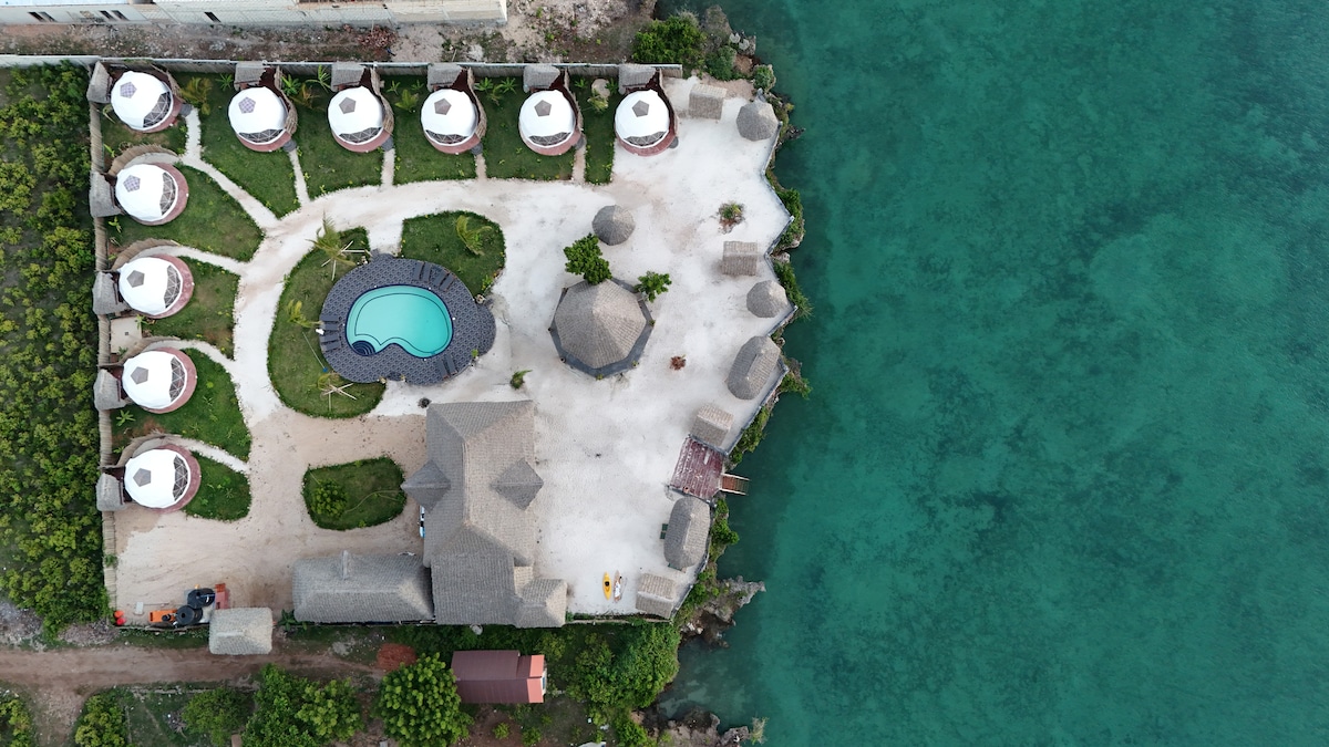 Cənnət şəhəri dəniz sahilində, naturanın əhatəsində yerləşən sakitlik vahəsidir. İnslandda yeganə ən müasir qlempinqli günbəz çadırları təklif etməkdən qürur duyuruq. Bütün otaqlar Kondisioner,isti su,ikinəfərlik çarpayı+birnəfərlik çarpayı,qarderob, açıq havada özəl hamam otaqları təklif edir. Mövcud üzgüçülük hovuzu,restoran, bar və 24 saat təhlükəsizlik. Ada turları,qayıq safariləri, dayvinq, snorchling və hava limanı transferini təşkil etməkdən məmnun olarıq. Kendva və Nunqvidən cəmi 7 dəqiqəlik məsafədəyik. Jetsurf məktəbimiz var!!