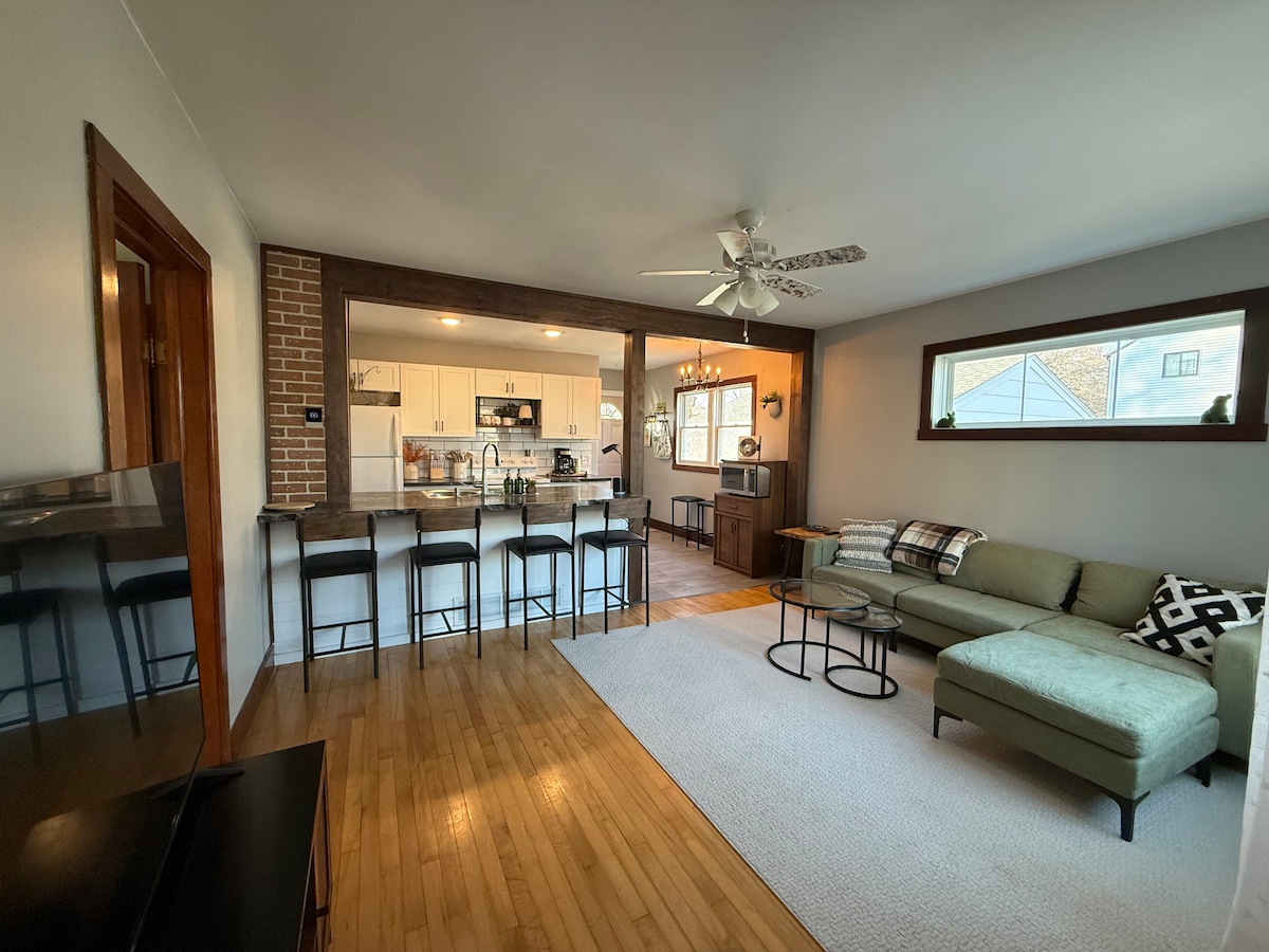 GFVACA kolleksiyasının bir hissəsi! Tarixi ev. Zirzəmidə Sıratağlı w/85" TV, Məişət Texnikası və Qranit Üstü ilə Aşpazlar Mətbəxi. Böyük arxa həyət və veranda. Küçədə Parkinqdən Kənar. 2 Ön Yük Paltaryuyan/Quruducular. Keurig w/ K-Cups, Otel Keyfiyyətli Döşəkağılar, Dəsmallar, Yastıqlar, Sabunlar Təmin Edilir. Propan Barbekü, Masaüstü və Kart Oyunları. King Ölçüsü Əsas. İkimərtəbəli Çarpayılar. Wi-Fi olan hər bir yataq otağında Roku TV. Qonaq Otağında Roku TV. Milli Tarixi Reyestrdə göstərilib. Səviyyə 2 EV şarj cihazı. $ 300 Təhlükəsizlik Depoziti tələb olunur.