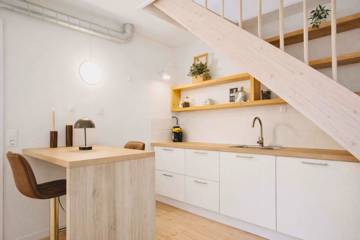 Bright 2-level apartment in Viborg 🤍 A bright and calming apartment with high ceilings, exposed beams and a private terrace. Perfect for relaxation, focus or a peaceful break. Enjoy a cozy living space, double bed, open kitchen and natural light - a place to slow down and feel at home. Located in a quiet area with easy access to the city centre, cafés, green spaces and Aarhus.