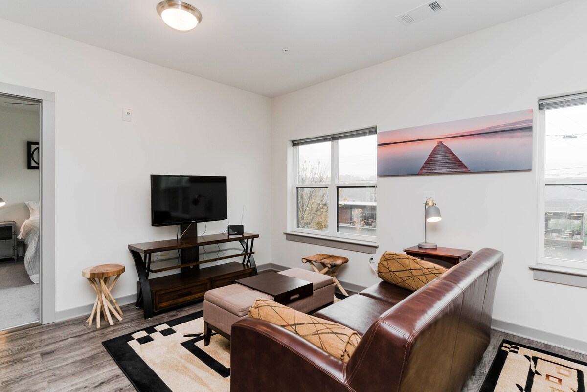 Beautiful Downtown Riverwalk Oasis THE CONDO This condo is a new downtown oasis!!! Designed and furnished to give our guests a modern and luxurious experience while also capturing the comforting feeling you can only get from being in a family home. Everything you could want downtown Chattanooga is at your finger tips. The Aquarium, The River Walk, Restaurants, Bars, Coolidge Park and much much more are within minutes reach. You will also have access to our Pool, Gym and Clubhouse!!!