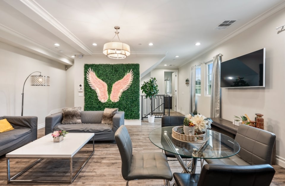 Art-filled retreat with unique artifacts, a lush garden with vibrant plants and vegetation, small pond, private pool & spa, firepit, and outdoor kitchen. Relax in a quiet cul-de-sac with two shaded patios, modern entertainment including streaming TVs, surround sound, a small pool table, and an Xbox. Ideal for families, friends, couples, or business travelers seeking comfort, privacy, and a memorable Southern California stay near Disneyland and major attractions.