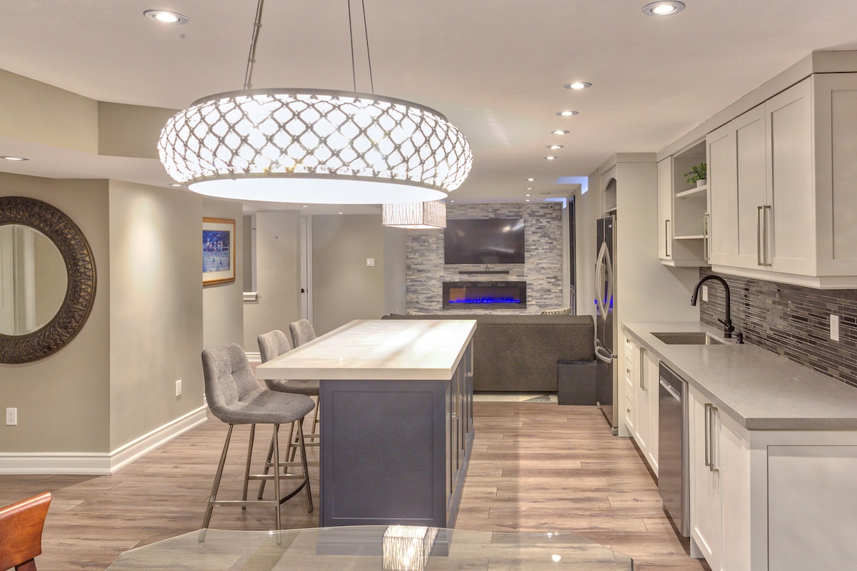 Evdən uzaqda növbəti rahat eviniz üçün tam təmirli, müasir, Parlaq, dəbdəbəli və geniş (1800 kv/metrdən çox) 2 otaqlı, 2 otaqlı hündür tavan, torpaq mənzilin üstündə 2 vanna otağı, ayrıca giriş və Veranda! 5 ulduzlu reytinqli və AirBnB-də evlərin ən yaxşı 5% -i! GTA-da olduğu kimi mərkəzdə. Pearson Hava Limanına, 401/404/407 şossesinə, ticarət mərkəzlərinə, ərzaq mağazalarına və bir sıra dəbli restoranlara, kinoteatrlara, parklara və velosiped/ yürüyüş yollarına yaxın olacaqsınız Əminliklə bron edin!