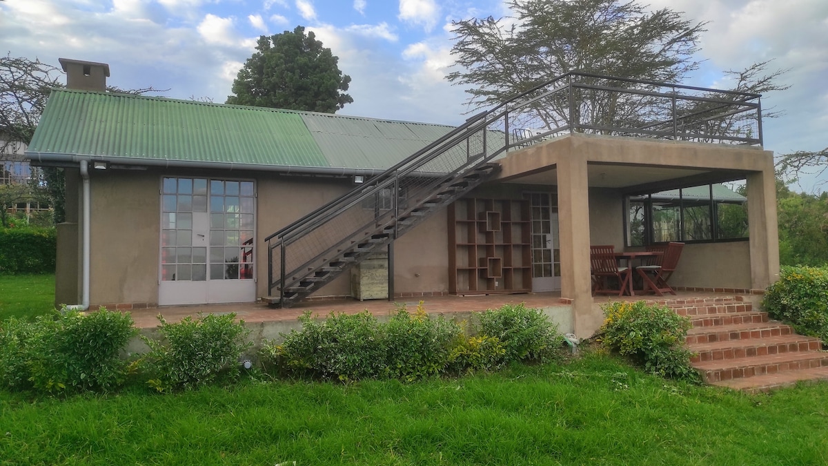 Naivaşada Mt.Longonot vulkanının ətəklərində qurulmuş çox unikal və "Qəribə", müasir (Eko-dost) kol evi. Ev Mabatidə (metal təbəqə) üzlüklüdür və Keniyada bir növ dizayndır. Evdə gündüz vaxtı günəş altında qızdırılan və gecə qızdırılan odun ola bilən kiçik dalğıc hovuzu var. Bir tərəfdaş ilə romantik bir həftə sonu və ya tək istirahət etmək üçün sakit bir həftə sonu axtarırsınızsa, bu, sizin üçün bir evdir! Ev tamamilə "ucsuz-bucaqsız" dır və onunla təchiz edilib ☀️