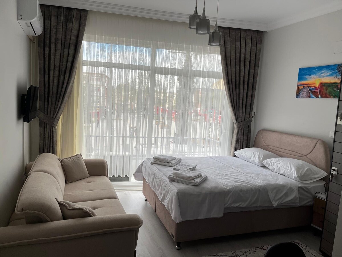 Çanaqqalanın mərkəzində yerləşən və tarixi Aynalı Bazarı və Kordonla piyada məsafəsində olan yaşayış yerimizdən bərə körpüsünə, muzeylərə və çimərliklərə asanlıqla gedə bilərsiniz. Tam təchiz olunmuş mətbəximizdə öz yeməklərinizi hazırlaya və ya ətrafdakı restoranları araşdıra bilərsiniz. Pulsuz Wi-Fi, kondisionerli otaqlar və rahat çarpayılarla özünüzü evinizdəki kimi hiss edəcəksiniz. Şəhərin mərkəzində sakit və dinc bir mühitdə dincələ və rahatlaya bilərsiniz. İcazə sənədi nömrəsi:17-000499