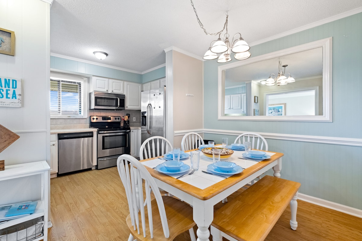 Seabrook adasının təklif etdiyinin ən yaxşısı olan 729 Spinnaker-ə xoş gəlmisiniz! Taxtadan 9 çimərliyə giriş ("qürub çimərliyi"), qolf və hovuz imkanlarından uzaqdayıq. **Hamam otaqları 2024-cü ilin dekabr ayında yenilənib ** İMKAN KARTLARI DAXİLDİR. Bu kartlar sizə okean sahili hovuza (mövsümi), Pelican 's Nest açıq hava restoranına/barına (mövsümi), Island House restoranına/barına, qolf və tennis/turşuboluna giriş imkanı verir.