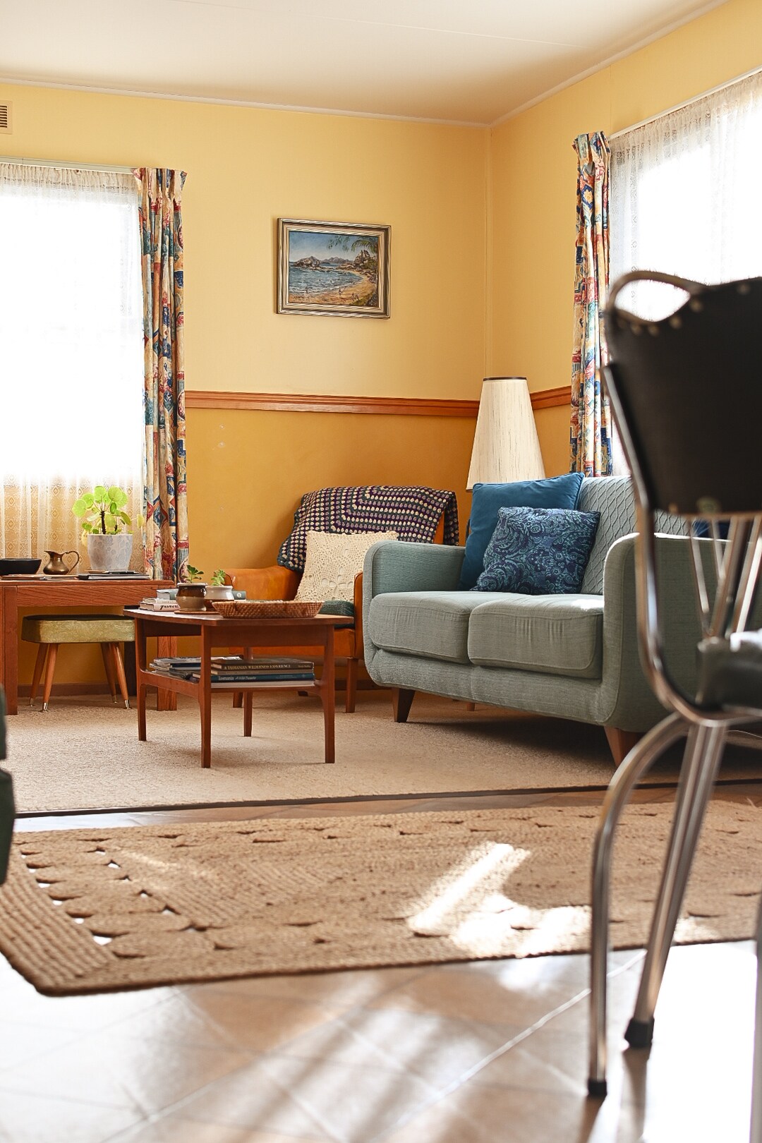 Cute, little retro shack all to yourself. Great for couples or small families. Very convenient location with the beach and creek only a very short walk away as are the park and general store. Secure backyard with deck and BBQ area. Push bikes and beach equipment provided for use. Two living areas each with its own TV.