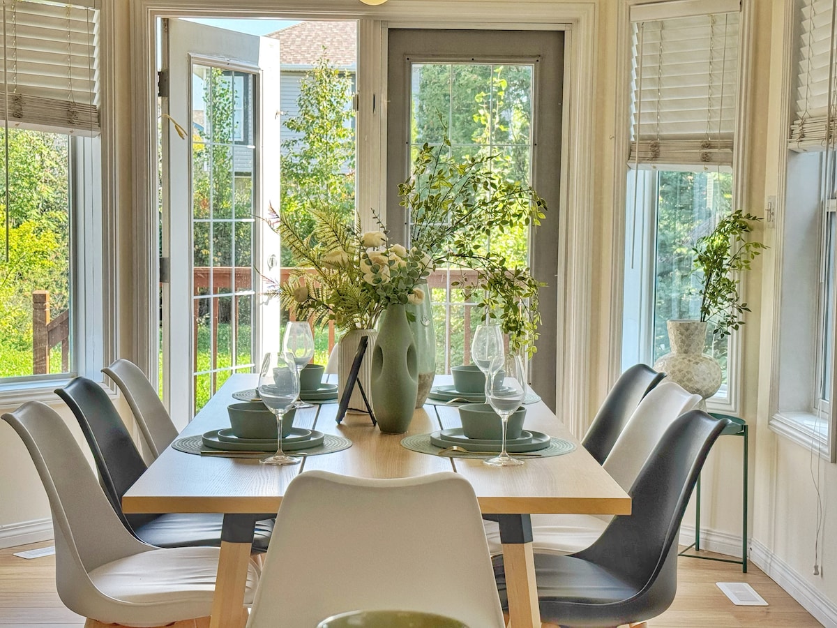 Yüksək rahatlıq üçün düşünülmüş şəkildə dizayn edilmiş evimizdə zərif lüks və ailə yönümlü rahatlıq bir araya gəlir. Daxili proyektor, rahat qaz buxarısı və spa üslublu iki nəfərlik buxar duşundan, eləcə də hər yaş üçün düşünülmüş oyuncaq və oyunlardan zövq alın. Mətbəxdə daha az qablaşdırmağa və daha çox zövq almağa kömək edəcək premium Ninja cihazları var. Gəzinti yolları, oyun meydançası olan sakit yaşıl məkanın arxasında yerləşir və Cənubi Edmonton Common, MW Şəhər Mərkəzi və LRT-dən cəmi 5 dəqiqəlik məsafədədir.