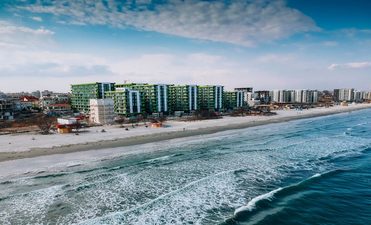 New Apartment with sea view and pool access is situated right next to the beach in Alezzi Beach Resort, in one of the best areas in Mamaia. You can sip your coffee in the balcony, watch the sunrise and feel the Black Sea breeze. The kitchen is fully equipped and you are welcome to cook. Nearby you can find the most diverse restaurants, coffee shops and clubs. Our guests will have also free access to the indoor and outdoor pools, fitness gym, SPA, playgrounds and pool for children.