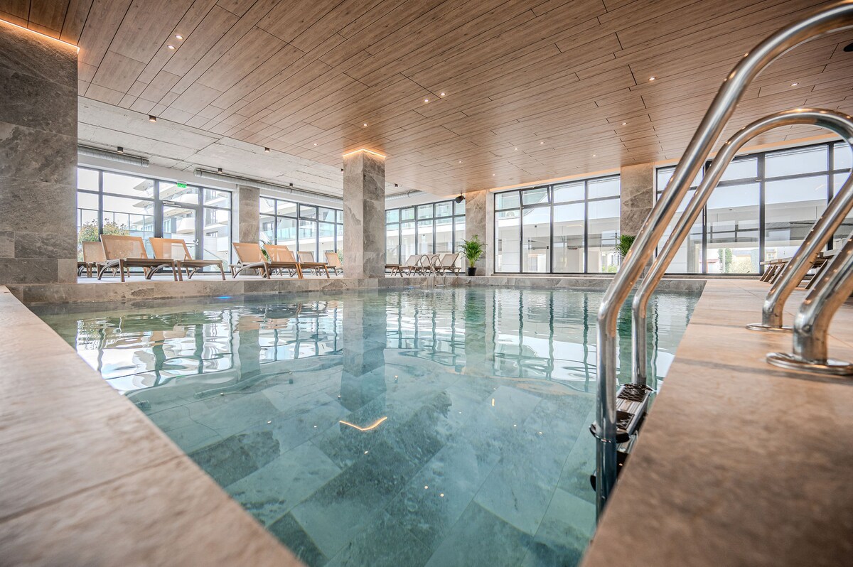 Erato Apartment Odyssey-də Alezzi Resort ( ən yeni kurort 2025) yerləşir. Bu rahat bir yataq otaqlı mənzil 4 böyük və ya 2 böyük və 2 uşaq üçün qonaqlama təklif edir. Çimərliyə qədər məsafə 300 metrə yaxındır və çimərlik sahəsi Mamaia Nord Resort-da ən çox axtarılan yerlərdən biridir. Çimərlikdən, restoranlardan piyada məsafədə. * SPAvə oyun meydançasına pulsuz giriş * Bütün il boyu hovuzlara və fitnes zonasına pulsuz giriş imkanı * Pulsuz wi-fi və parkinq * Qəhvə/Su bizdə! * 24/7 Dəstək