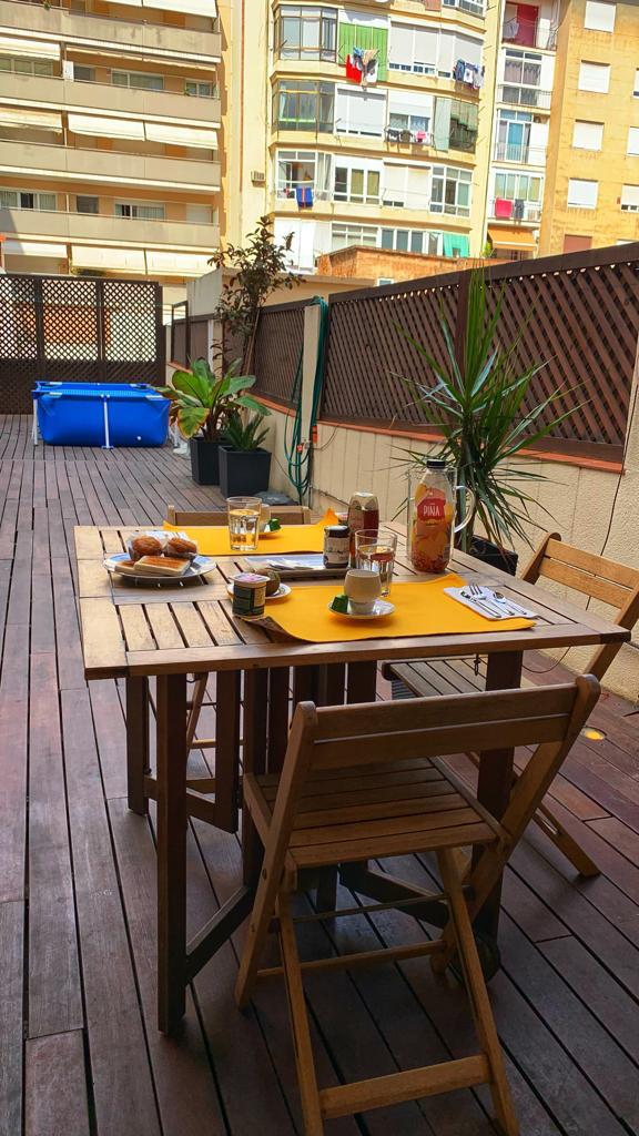 A bright sunny apartment in Barcelona city center, with a huge private terrace of 50 meters, in the Eixample district, just 5 minutes walk from the “Sagrada Familia” and 15 minutes from Paseo de Gracia and “The Ramblas” .