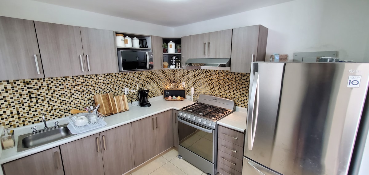 Nuevo departamento minimalista con todo lo que un viajero o familia necesita para pasar una cómoda noche, nos encontramos en una buena ubicación ya que alado de nosotros se encuentra una parada de autobús, así como enfrente del departamento se encuentra una tienda Oxxo, también a 3 minutos en coche se encuentra Soriana y nos ubicamos a 7 minutos en coche de los mejores restaurantes de la ciudad.